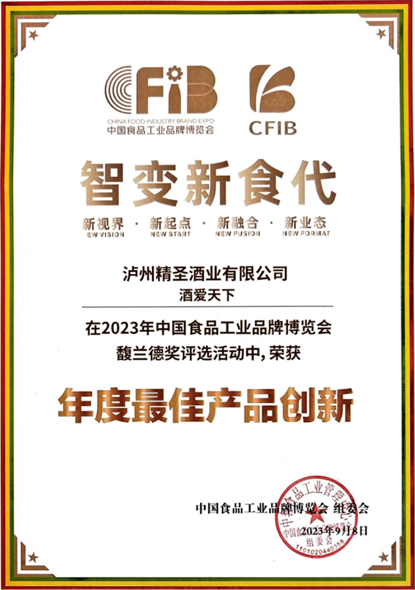 瀘州精圣酒業(yè)有限公司出品的“精圣”牌酒愛天下·禮品酒,具有諸香渾然添陳、內(nèi)斂渾厚飽滿、韻味甘綿雅凈,聞著香、喝著順、飲后心曠神怡的內(nèi)在品質(zhì),以及銀裝素雅剔透、生態(tài)玉白韻綠的外在裝潢,在此次展會(huì)中以其“蓋世酒仙、內(nèi)外兼修”的產(chǎn)品魅力優(yōu)勢脫穎而出,獲得馥蘭德獎(jiǎng)2023年度產(chǎn)品創(chuàng)新獎(jiǎng)。